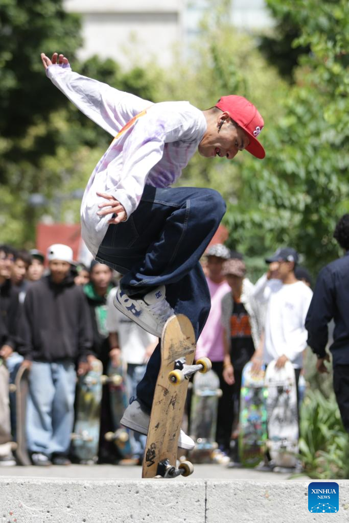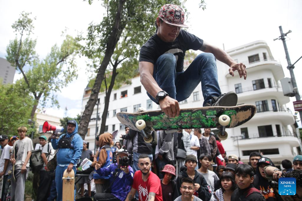 CIUDAD DE MEXICO, 21 junio, 2024 (Xinhua) -- Un joven patina en el marco del Día Mundial del Skate, en la Ciudad de México, capital de México, el 21 de junio de 2024. (Xinhua/Francisco Cañedo)