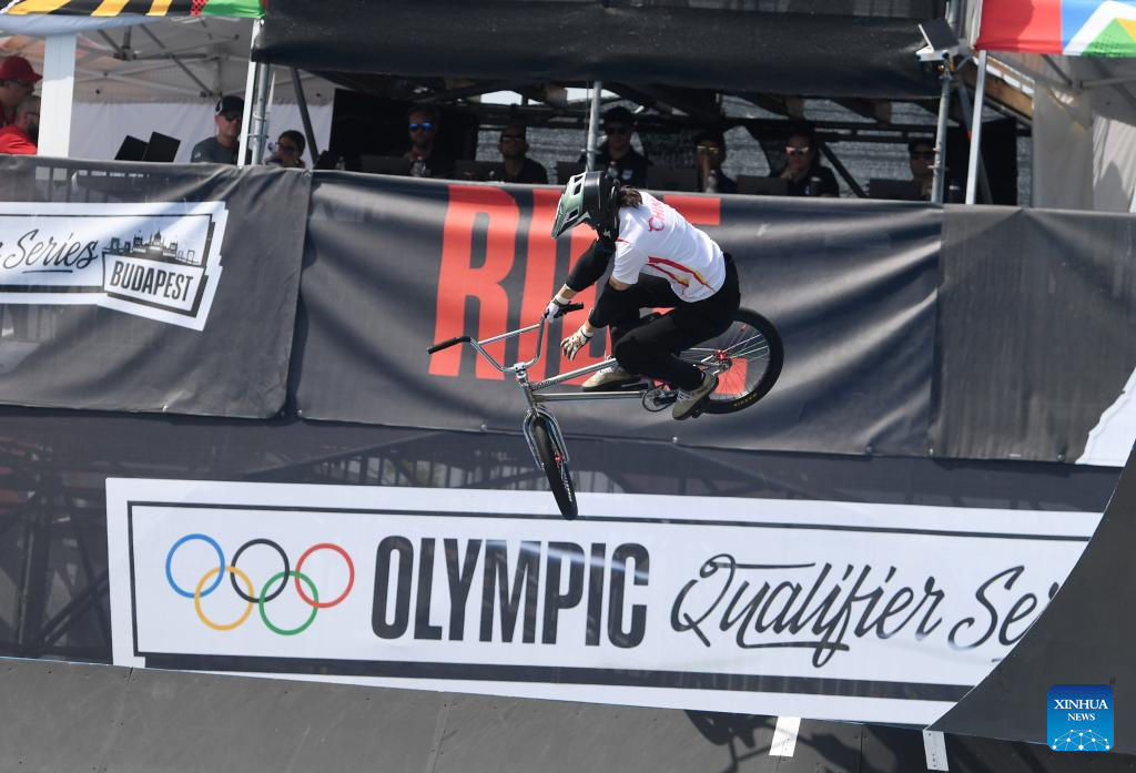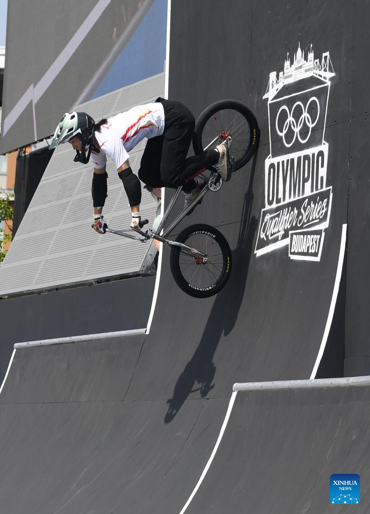 BUDAPEST, 21 junio, 2024 (Xinhua) -- Sun Jiaqi, de China, compite durante la clasificatoria de park femenino de ciclismo BMX freestyle en las Series de Clasificación Olímpica de Budapest, en Budapest, Hungría, el 21 de junio de 2024. (Xinhua/He Canling)