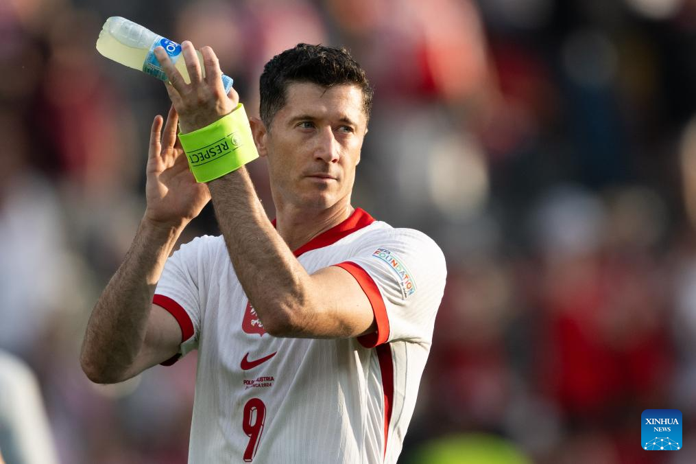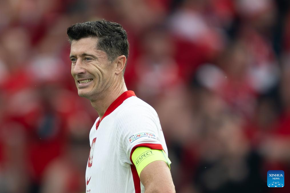 BERLIN, 22 junio, 2024 (Xinhua) -- Imagen del 21 de junio de 2024 de Robert Lewandowski, de Polonia, saludando a los espectadores al término del partido correspondiente al Grupo D de la EURO 2024 de la UEFA, entre Polonia y Austria, en Berlín, Alemania. (Xinhua/Xiao Yijiu)