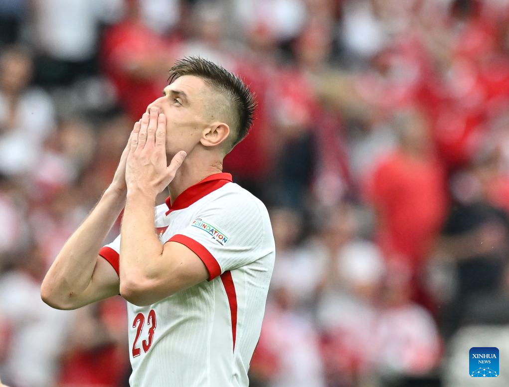 BERLÍN, 22 junio, 2024 (Xinhua) -- Imagen del 21 de junio de 2024 de Krzysztof Piatek, de Polonia, reaccionando durante el partido correspondiente al Grupo D de la EURO 2024 de la UEFA, entre Polonia y Austria, en Berlín, Alemania. (Xinhua/Ren Pengfei)