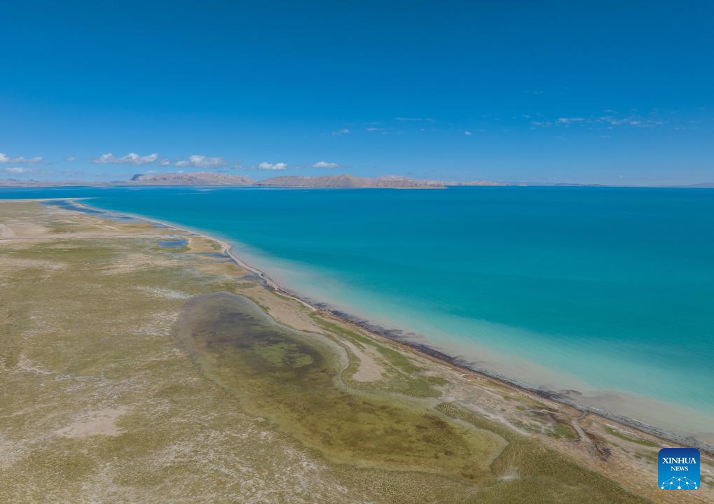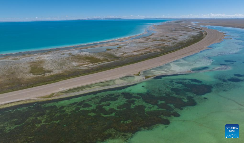 LHASA, 23 junio, 2024 (Xinhua) -- Vista aérea tomada con un dron el 22 de junio de 2024 del paisaje del Lago Serling Tso, en la región autónoma de Xizang, en el suroeste de China. Localizado en la Reserva Natural Nacional de Qiangtang, el Lago Serling Tso es el lago más grande de la región autónoma de Xizang. Con la mejora de las condiciones del tráfico alrededor del lago en los últimos años, más turistas están visitando para disfrutar del paisaje único. (Xinhua/Tenzin Nyida)