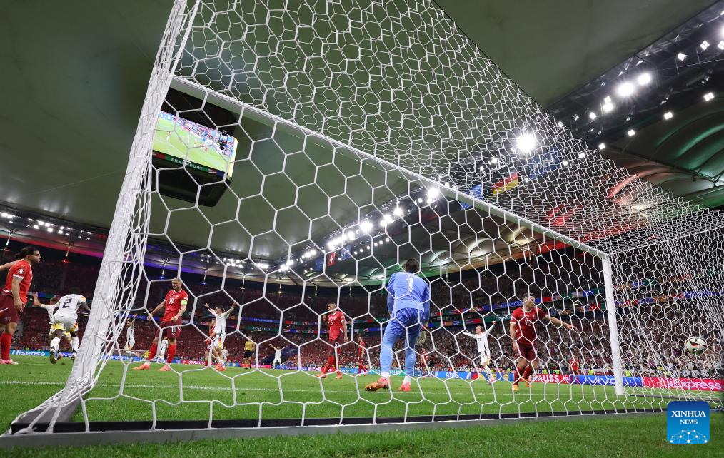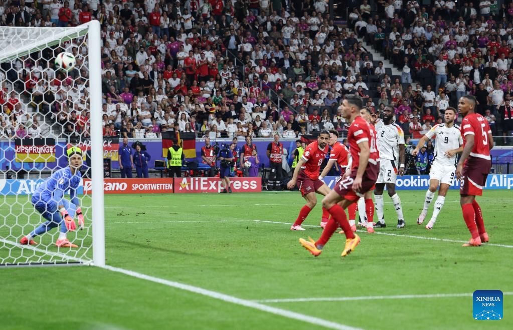 FRANKFURT, 24 junio, 2024 (Xinhua) -- Imagen del 23 de junio de 2024 de Niclas Fullkrug (2-d), de Alemania, realizando una anotación durante el partido correspondiente al Grupo A de la EURO 2024 de la UEFA, entre Alemania y Suiza, en Frankfurt, Alemania. (Xinhua/Bai Xuefei)