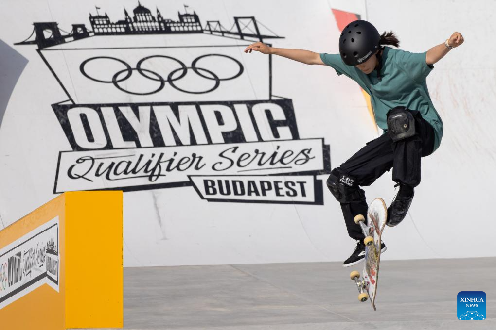 BUDAPEST, 24 junio, 2024 (Xinhua) -- Imagen del 23 de junio de 2024 de Yoshizawa Coco, de Japón, compitiendo durante la final femenina de street de skateboarding en las Series de Clasificación Olímpica de Budapest, en Budapest, Hungría. (Xinhua/Attila Volgyi)
