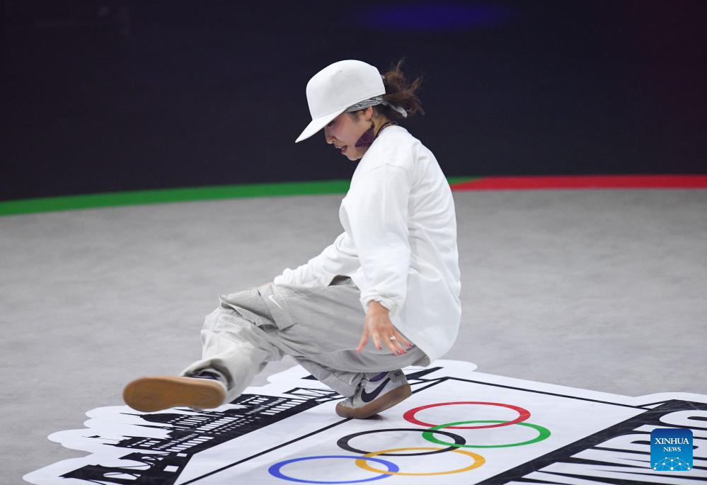 BUDAPEST, 24 junio, 2024 (Xinhua) -- Imagen del 23 de junio de 2024 de Yuasa Ami, de Japón, compitiendo durante la final de B-Girls de breaking en las Series de Clasificación Olímpica de Budapest, en Budapest, Hungría. (Xinhua/Lian Yi)