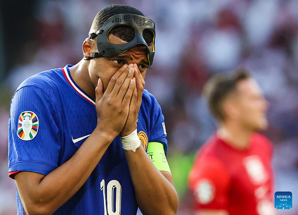 DORTMUND, 26 junio, 2024 (Xinhua) -- Imagen del 25 de junio de 2024 de Kylian Mbappé, de Francia, reaccionando durante el partido correspondiente al Grupo D de la EURO 2024 de la UEFA, entre Francia y Polonia, en Dortmund, Alemania. (Xinhua/Zhang Fan)