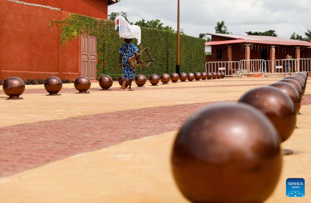 OUIDAH, 23 agosto, 2024 (Xinhua) -- Imagen del 27 de mayo de 2024 de una mujer caminando por la Plaza Chacha, en Ouidah, Benín. "Costa de los Esclavos" se refiere a una región histórica a lo largo de la costa de Africa Occidental. El nombre deriva de la trata transatlántica de esclavos en el continente. El 23 de agosto se conmemora el Día Internacional del Recuerdo de la Trata de Esclavos y de su Abolición. (Xinhua/Li Yahui)