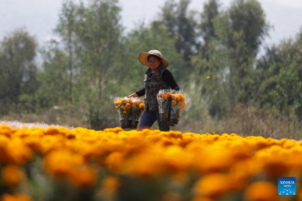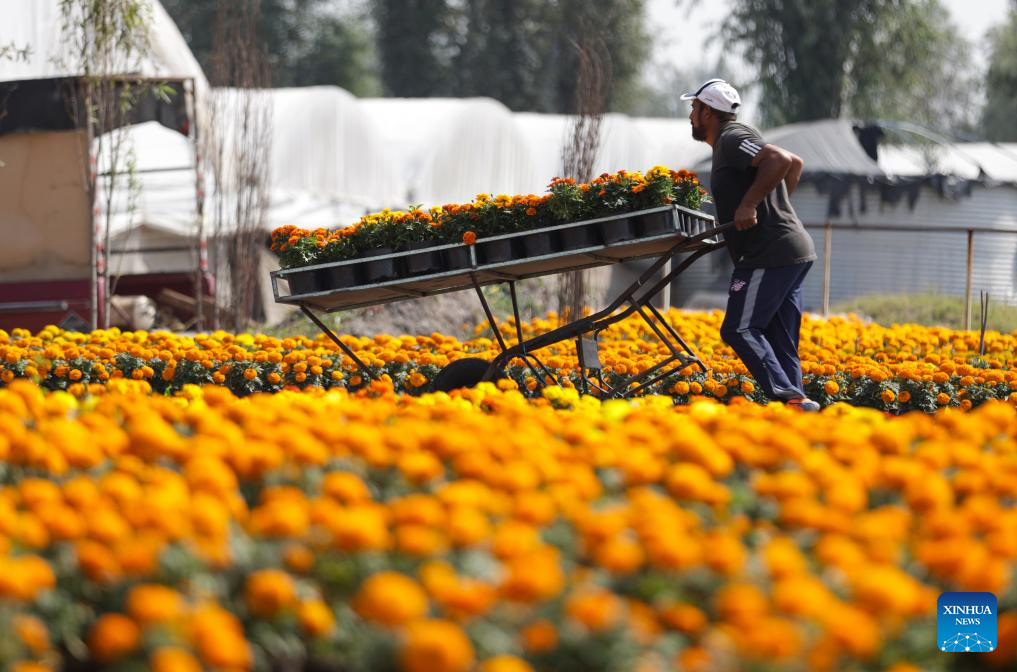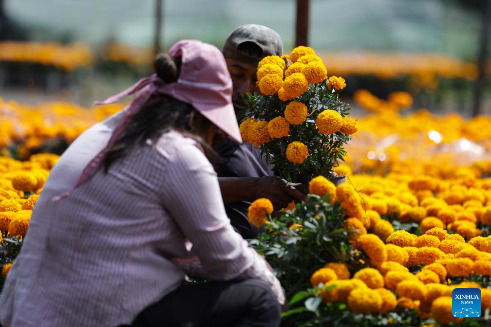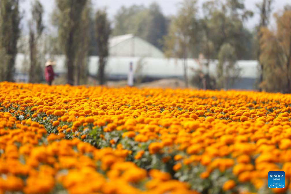 CIUDAD DE MEXICO, 30 octubre, 2024 (Xinhua) -- Imagen del 29 de octubre de 2024 de un campo de flores de cempasúchil, un elemento tradicional para las ofrendas de Día de Muertos, en la Ciudad de México, capital de México. (Xinhua/Francisco Cañedo)