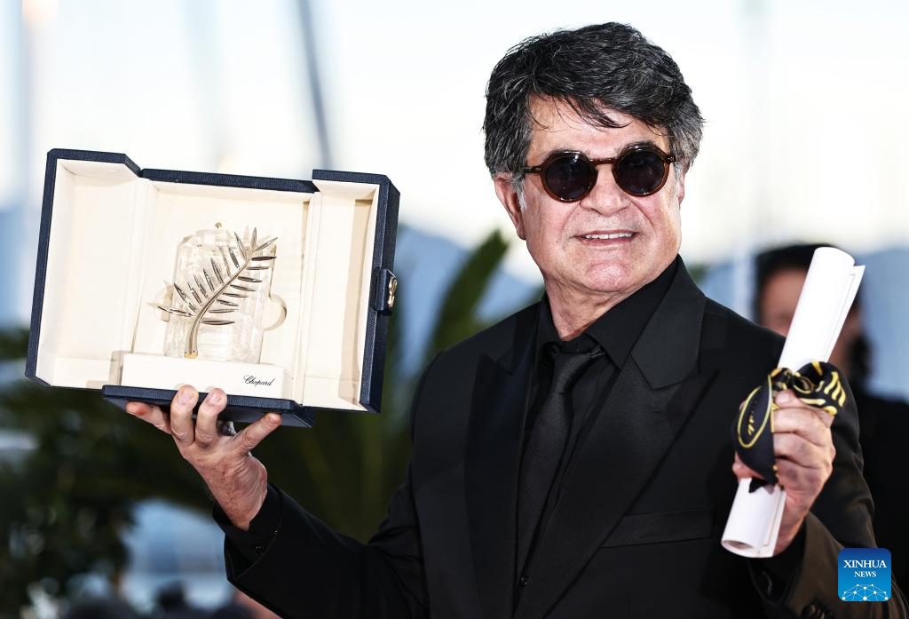 CANNES, 25 mayo, 2025 (Xinhua) -- Imagen del 24 de mayo de 2025 del director iraní, Jafar Panahi, posando con su trofeo en una sesión fotográfica después de ganar la Palma De Oro por la película "A Simple Accident" durante la ceremonia de clausura de la 78ª edición del Festival de Cine de Cannes, en Cannes, en el sur de Francia. (Xinhua/Gao Jing)