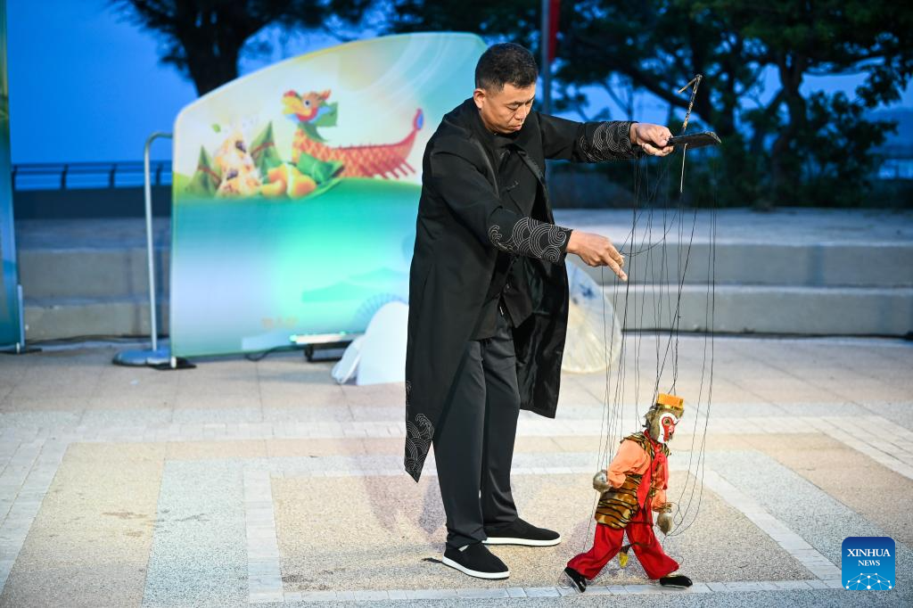 ZURRIEQ, 25 mayo, 2025 (Xinhua) -- Imagen del 24 de mayo de 2025 de un artista chino realizando una presentación de marionetas, en Zurrieq, Malta. Una vibrante exhibición de artes tradicionales chinas, incluyendo música, danza y marionetas, tuvo lugar el sábado por la noche en Zurrieq, en el oeste de Malta, para celebrar el próximo Festival del Bote del Dragón chino. (Xinhua/Jonathan Borg)