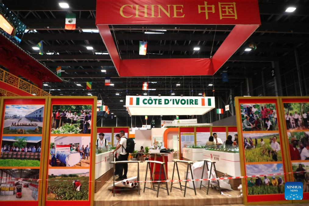 ABIYÁN, 25 mayo, 2025 (Xinhua) -- Imagen del 23 de mayo de 2025 de personas visitando el Pabellón de China durante la VII Exposición Internacional de Agricultura y Recursos Animales (SARA 2025) en el Centro de Exposiciones de Abiyán, en Abiyán, Cote d'Ivoire. La exposición, una importante feria agrícola en el oeste de Africa, abrió aquí el viernes, con China participando como invitado de honor. En un periodo de 10 días, se espera que la feria atraiga a más de 500.000 visitantes y cerca de 1.000 expositores presentando productos y servicios a lo largo de Africa, Asia y Europa. (Xinhua/Yvan Sonh)