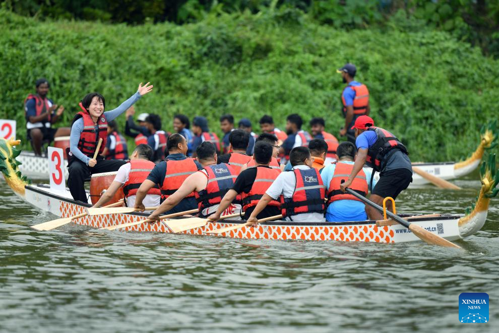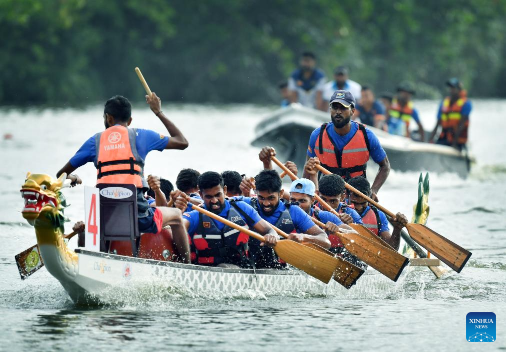 KOTTE, 1 junio, 2025 (Xinhua) -- Imagen del 31 de mayo de 2025 de personas participando en el Festival de Botes del Dragón 2025 en el Campeonato de Botes del Dragón de la Copa de la Amistad China-Sri Lanka, en Kotte, Sri Lanka. En un gesto de diplomacia deportiva e intercambio cultural, la Embajada de China en Sri Lanka ha donado cinco botes del dragón de estándar internacional para 12 personas al Ministerio de Asuntos Juveniles y Deportes de Sri Lanka. La donación se hizo formalmente el sábado en el Festival de Botes del Dragón 2025 en el Campeonato de Botes del Dragón de la Copa de la Amistad China-Sri Lanka. (Xinhua/Ajith Perera)