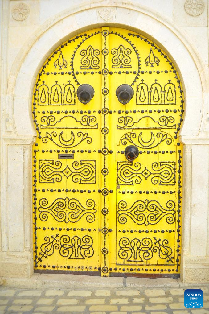 TÚNEZ, 1 junio, 2025 (Xinhua) -- Imagen del 31 de mayo de 2025 de una puerta residencial, en la Medina de Túnez, Túnez. La Medina de Túnez fue declarada Patrimonio de la Humanidad por la Organización de las Naciones Unidas para la Educación, la Ciencia y la Cultura (Unesco) en 1979. (Xinhua/Adel Ezzine)
