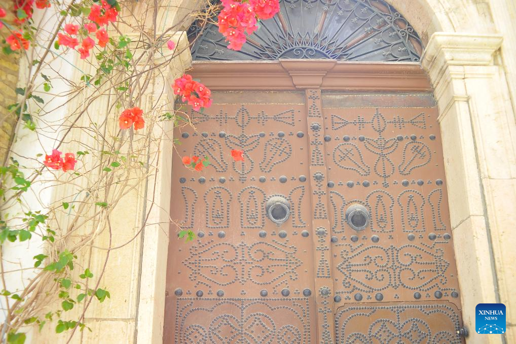 TÚNEZ, 1 junio, 2025 (Xinhua) -- Imagen del 31 de mayo de 2025 de una parte de una puerta residencial, en la Medina de Túnez, Túnez. La Medina de Túnez fue declarada Patrimonio de la Humanidad por la Organización de las Naciones Unidas para la Educación, la Ciencia y la Cultura (Unesco) en 1979. (Xinhua/Adel Ezzine)