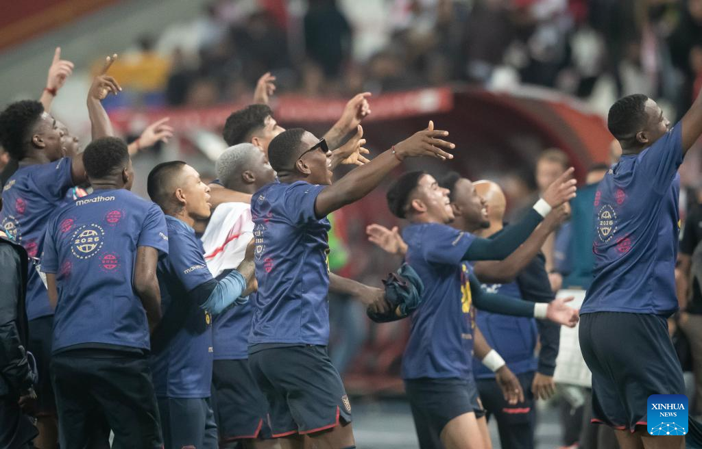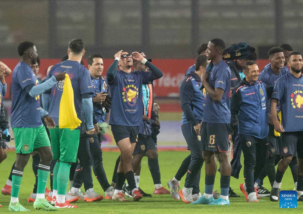 LIMA, 11 junio, 2025 (Xinhua) -- Imagen del 10 de junio de 2025 de los jugadores de Ecuador festejando su clasificación al término del partido ante Perú correspondiente a las Eliminatorias Sudamericanas para el Mundial de Estados Unidos, México y Canadá 2026 celebrado en el Estadio Nacional, en Lima, Perú. (Xinhua/Mariana Bazo)