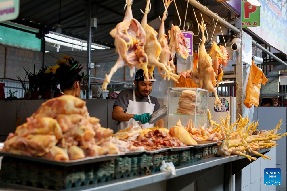 LIMA, 11 junio, 2025 (Xinhua) -- Un vendedor de pollo espera por clientes en un puesto de un mercado, en el distrito de Lurín, en el sur de Lima, Perú, el 11 de junio de 2025. (Xinhua/Mariana Bazo)