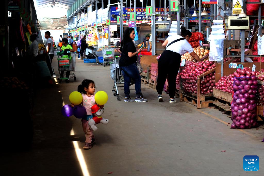 LIMA, 11 junio, 2025 (Xinhua) -- Una niña camina frente a puestos de un mercado, en el distrito de Lurín, en el sur de Lima, Perú, el 11 de junio de 2025. (Xinhua/Mariana Bazo)