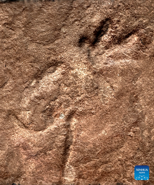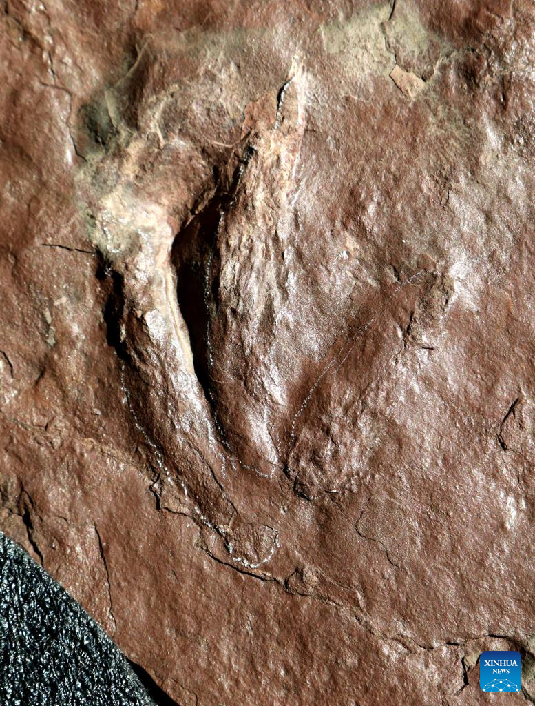 BEIJING, 12 junio, 2025 (Xinhua) -- Imagen del 19 de febrero de 2025 de las huellas de mamaliaforme de estratos del Cretácico (d-arriba), descubiertas en el distrito de Huaiji, en la ciudad de Zhaoqing de la provincia de Guangdong, en el sur de China. Un equipo de investigación de la Universidad de Geociencias de China (Beijing) anunció el jueves que ha registrado, por primera vez, una combinación de huellas de mamaliaforme y dinosaurio en estratos del Cretácico en el distrito de Huaiji, en la ciudad de Zhaoqing de la provincia de Guangdong, en el sur de China. La huella de mamaliaforme recién descubierta mide tan solo 1,8 centímetros de longitud, según el equipo de investigación. (Xinhua/Mi Jialin)