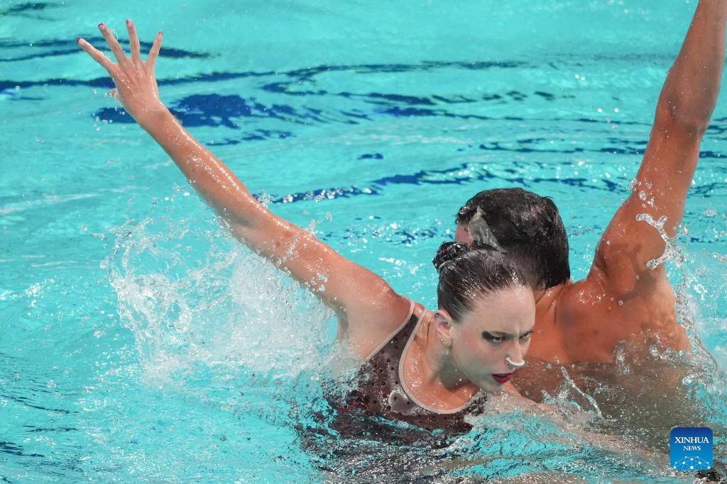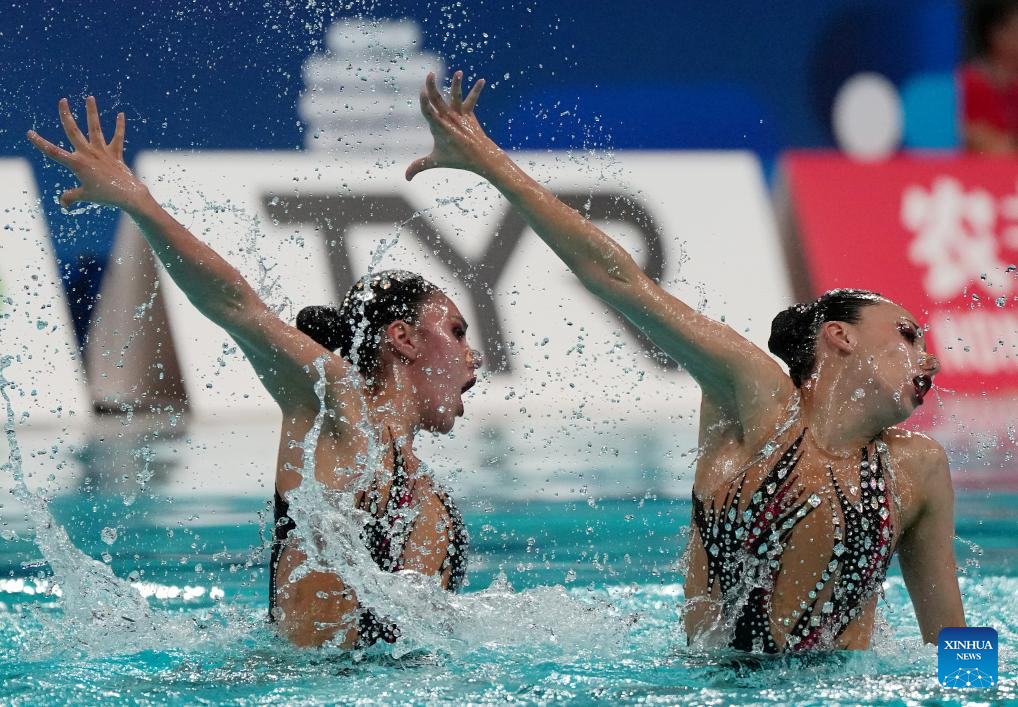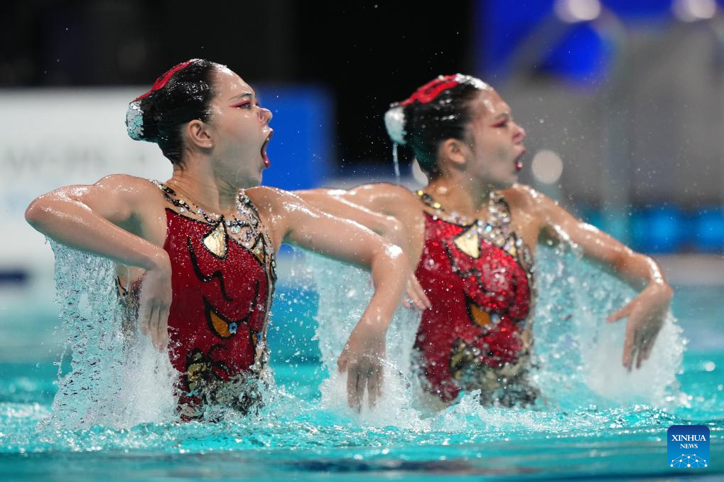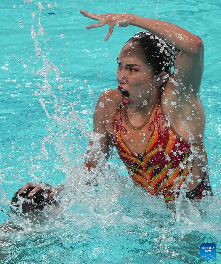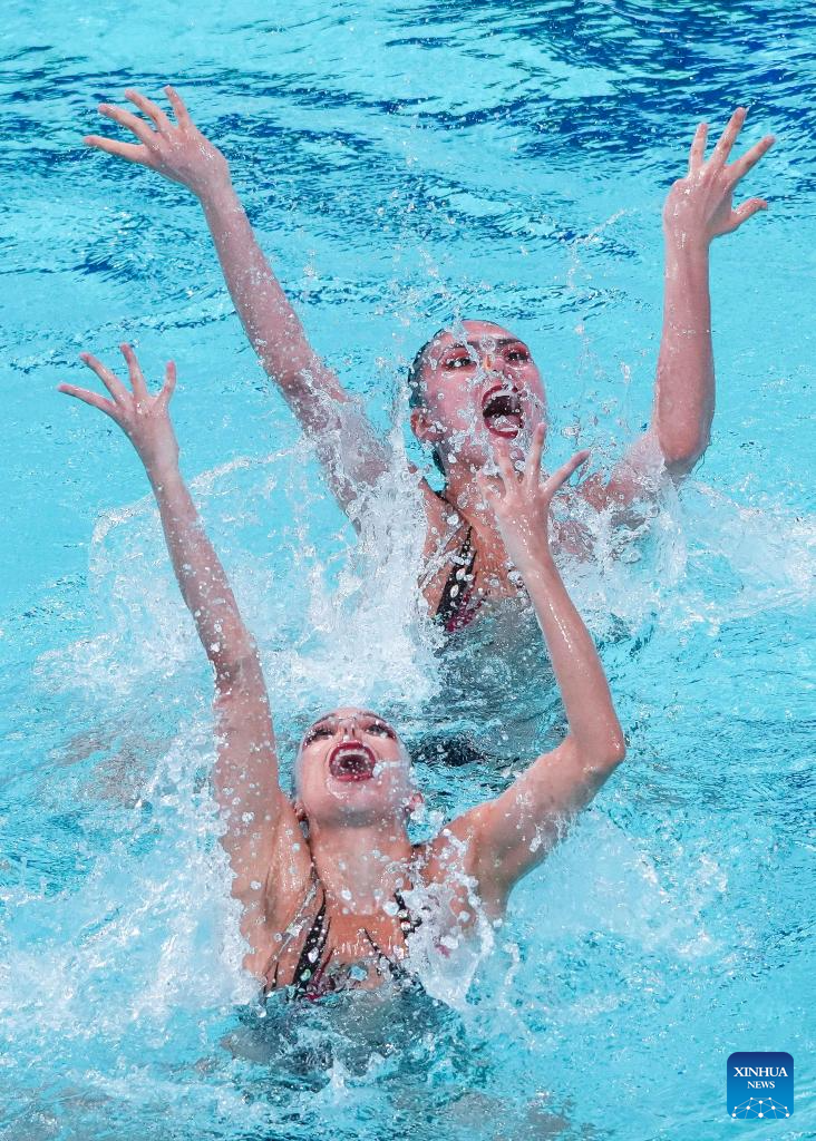 XI'AN, 14 junio, 2025 (Xinhua) -- Marla Fernanda Arellano Germes/Itzamary González Cuéllar, de México, compiten durante la final de dúo libre femenino en la Superfinal de la Copa del Mundo de Natación Artística 2025 de World Aquatics, en Xi'an, en la provincia de Shaanxi, en el noroeste de China, el 14 de junio de 2025. (Xinhua/Li Yibo)
