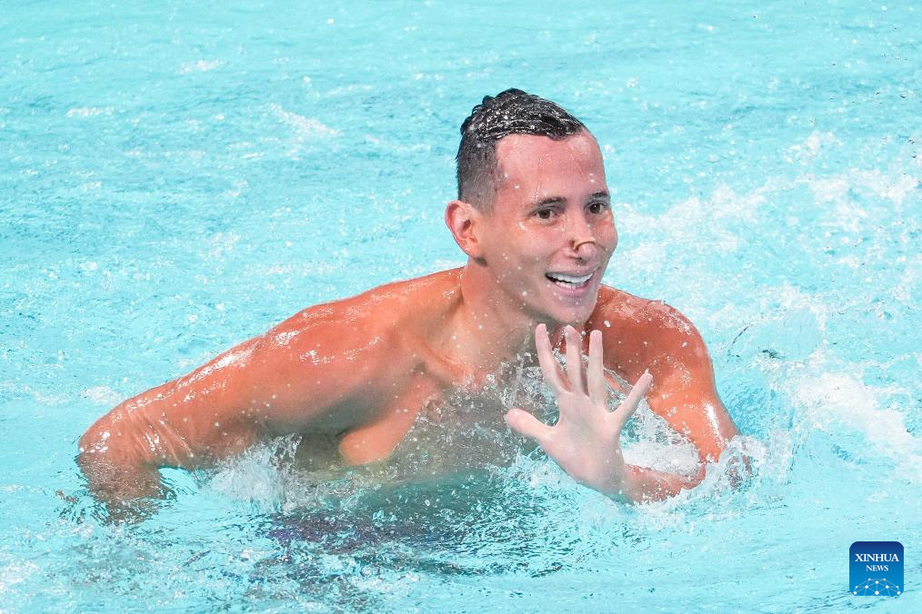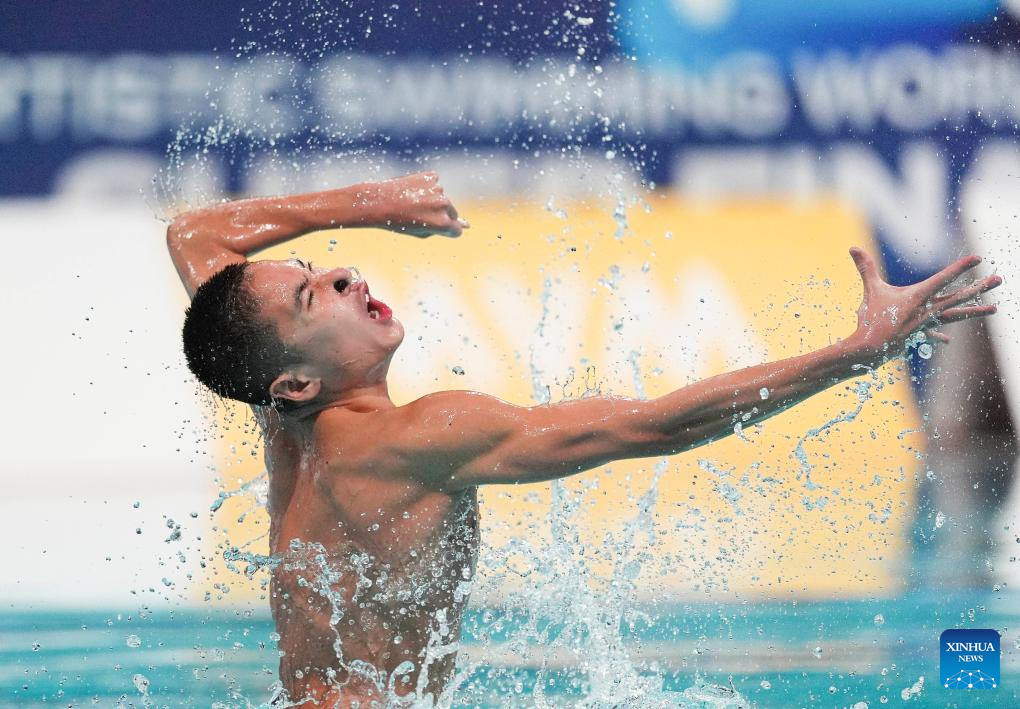 XI'AN, 14 junio, 2025 (Xinhua) -- Guo Muye, de China, compite durante la final de solo libre masculino en la Superfinal de la Copa del Mundo de Natación Artística 2025 de World Aquatics, en Xi'an, en la provincia de Shaanxi, en el noroeste de China, el 14 de junio de 2025. (Xinhua/Li Yibo)