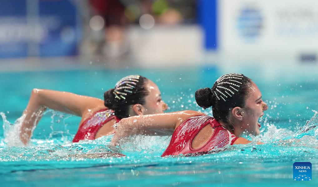 XI'AN, 14 junio, 2025 (Xinhua) -- Marla Fernanda Arellano Germes/Itzamary González Cuéllar, de México, compiten durante la final de dúo libre femenino en la Superfinal de la Copa del Mundo de Natación Artística 2025 de World Aquatics, en Xi'an, en la provincia de Shaanxi, en el noroeste de China, el 14 de junio de 2025. (Xinhua/Zou Jingyi)