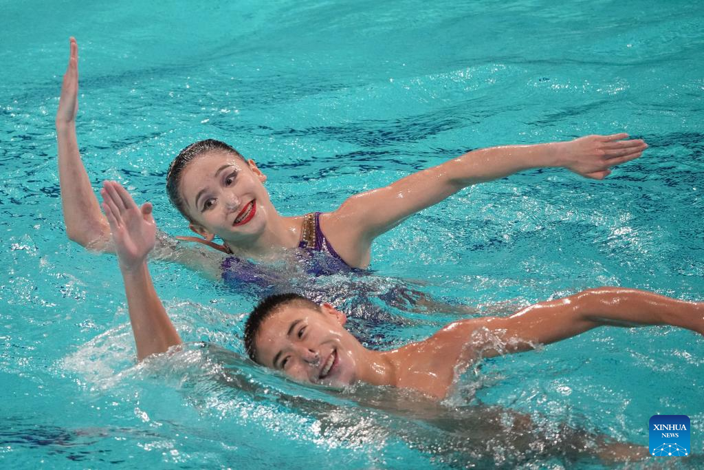 XI'AN, 14 junio, 2025 (Xinhua) -- Joana Betzabe Jiménez García/Diego Villalobos Carrillo, de México, compiten durante el evento de dúo técnico mixto en la Superfinal de la Copa del Mundo de Natación Artística 2025 de World Aquatics, en Xi'an, en la provincia de Shaanxi, en el noroeste de China, el 14 de junio de 2025. (Xinhua/Zou Jingyi)
