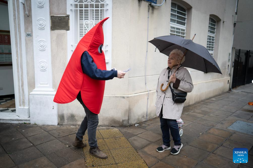 Un voluntario de la Cruz Roja Argentina entrega un volante a una mujer en una calle durante una campaña de donación de sangre en el marco del Día Mundial del Donante de Sangre, en la ciudad de Buenos Aires, capital de Argentina, el 14 de junio de 2025. Una campaña solidaria, con la participación de voluntarios, enfermeros, médicos y bioquímicos, promueve la donación de sangre en Argentina, en el marco del Día Mundial del Donante de Sangre, que se conmemora cada 14 de junio. (Xinhua/Martín Zabala)