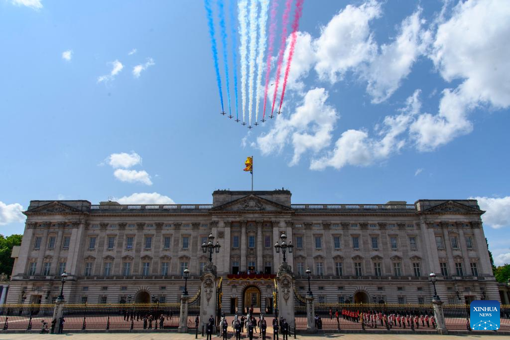 LONDRES, 15 junio, 2025 (Xinhua) -- Imagen del 14 de junio de 2025 un sobrevuelo visto durante el desfile Trooping the Colour, en honor al rey británico Carlos III en su cumpleaños oficial, en Londres, Reino Unido. (Xinhua/Ray Tang)