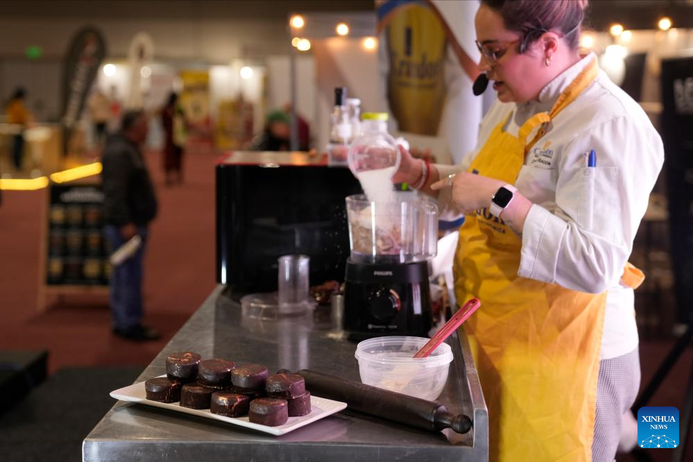 MONTEVIDEO, 15 junio, 2025 (Xinhua) -- Imagen del 13 de junio de 2025 de una chef realizando una demostración durante la Feria Internacional del Alfajor, en Montevideo, Uruguay. La Feria Internacional del Alfajor comenzó el viernes en el Laboratorio Tecnológico de Uruguay, en la capital Montevideo, y durará hasta el 15 de junio. (Xinhua/Nicolás Celaya)