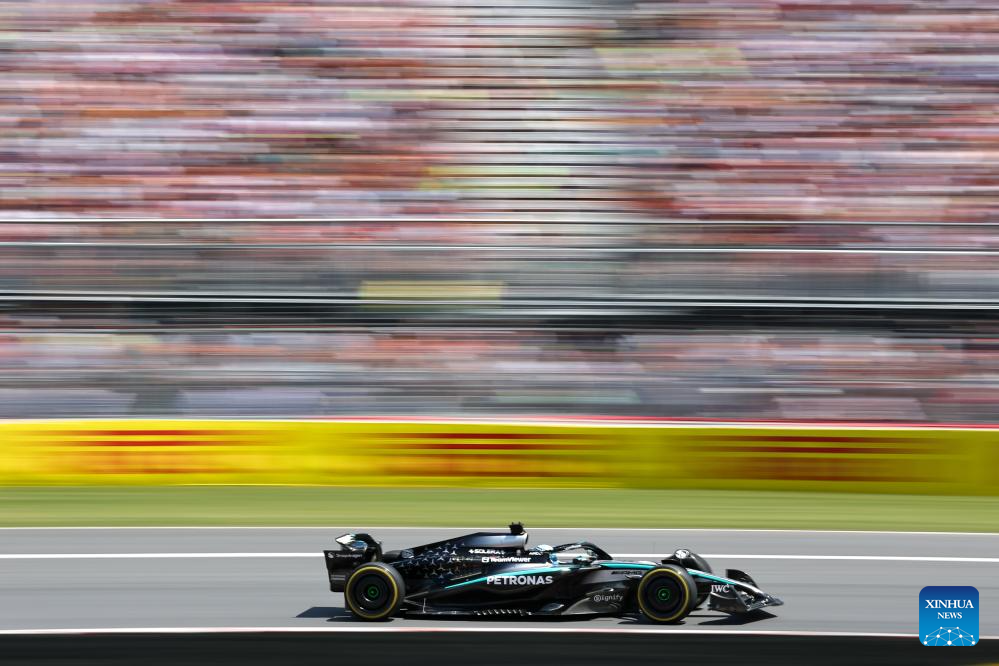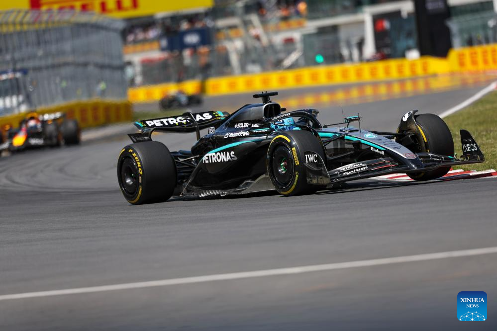 MONTREAL, 16 junio, 2025 (Xinhua) -- Imagen del 15 de junio de 2025 del piloto británico de la escudería Mercedes, George Russell, compitiendo durante la carrera del Gran Premio de Canadá de Fórmula Uno 2025, en el Circuito Gilles Villeneuve, en Montreal, Canadá. (Xinhua/Song Haiyuan)