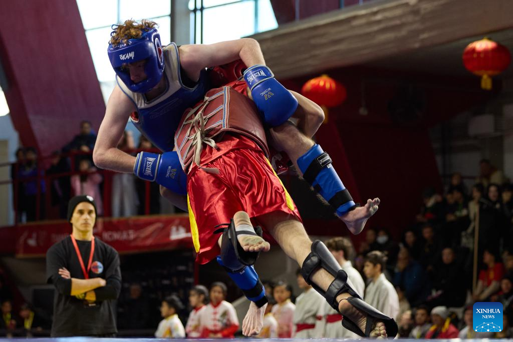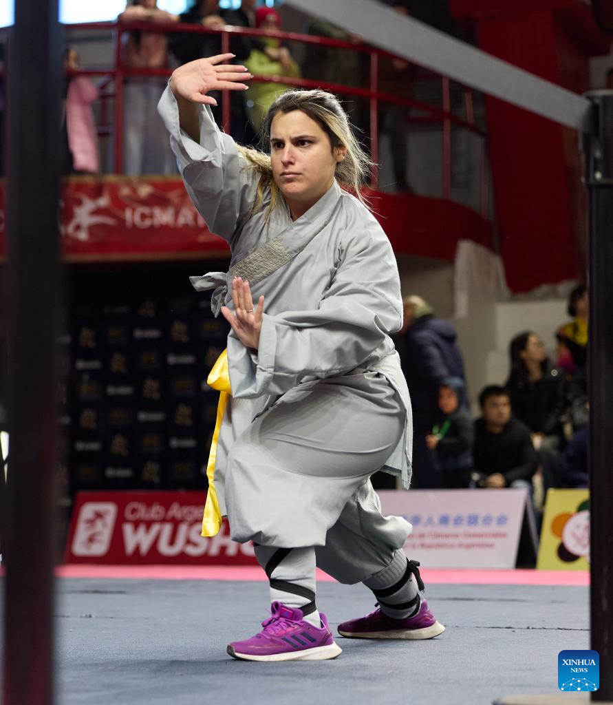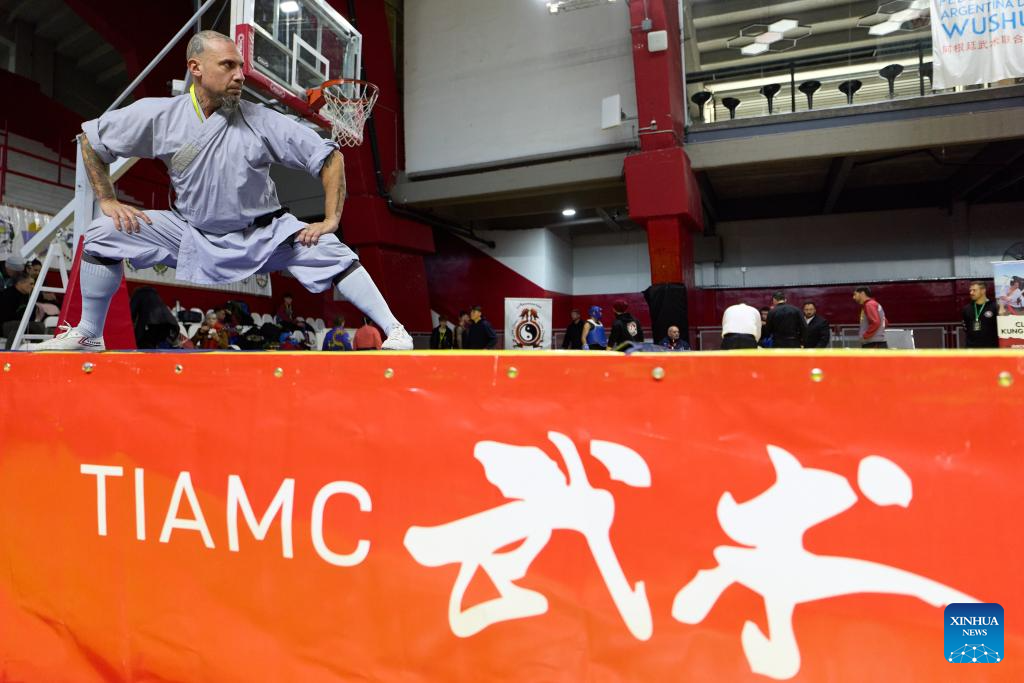 BUENOS AIRES, 16 junio, 2025 (Xinhua) -- Imagen del 15 de junio de 2025 de atleta compitiendo durante el Campeonato Nacional de Wushu de Argentina, en Buenos Aires, Argentina. (Xinhua/Meng Dingbo)