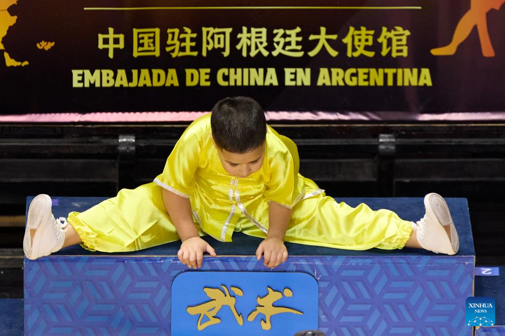 BUENOS AIRES, 16 junio, 2025 (Xinhua) -- Imagen del 15 de junio de 2025 de un joven atleta preparándose durante el Campeonato Nacional de Wushu de Argentina, en Buenos Aires, Argentina. (Xinhua/Meng Dingbo)