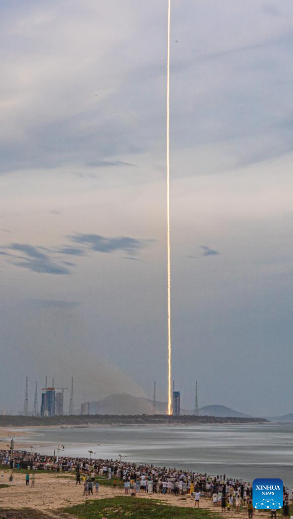 Un cohete portador Gran Marcha-12 transportando un grupo de satélites de internet, despega del sitio de lanzamiento comercial de naves espaciales de Hainan, en la provincia de Hainan, en el sur de China, el 4 de agosto de 2025. El cohete despegó a las 18:21 horas desde el sitio de lanzamiento comercial de naves espaciales de Hainan, en la meridional provincia insular de Hainan. El cohete colocó de forma exitosa las cargas útiles, consistentes en el séptimo grupo de satélites de internet de órbita baja, en la órbita predeterminada. (Xinhua/Pu Xiaoxu)