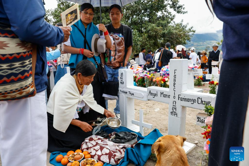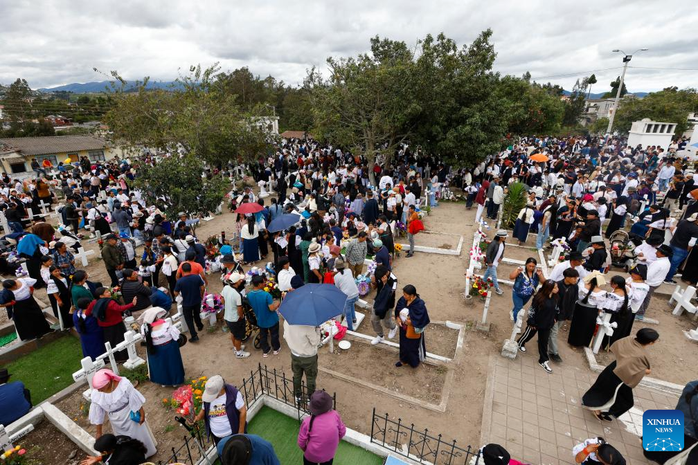 IMBABURA, 2 noviembre, 2025 (Xinhua) -- Personas de distintas comunidades indígenas se reúnen durante el Día de los Difuntos en el cementerio de Cotacachi, en la provincia de Imbabura, en el norte de Ecuador, el 2 de noviembre de 2025. (Xinhua/Ricardo Landeta)
