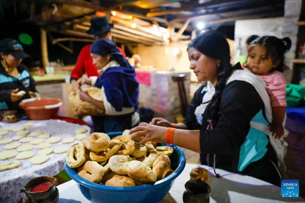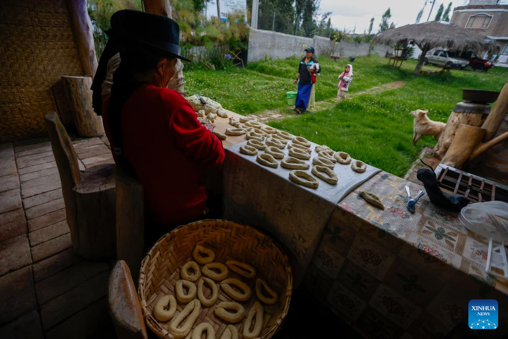 IMBABURA, 2 noviembre, 2025 (Xinhua) -- Imagen del 31 de octubre de 2025 de una mujer indígena de la comunidad de Turuco preparando panes durante los preparativos para el Día de los Difuntos, en la provincia de Imbabura, en el norte de Ecuador. (Xinhua/Ricardo Landeta)