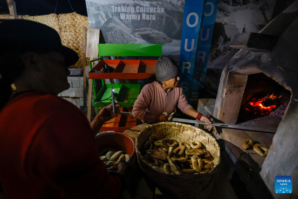 IMBABURA, 2 noviembre, 2025 (Xinhua) -- Imagen del 31 de octubre de 2025 de una mujer indígena de la comunidad de Turuco preparando pan en un horno de leña durante los preparativos para el Día de los Difuntos, en la provincia de Imbabura, en el norte de Ecuador. (Xinhua/Ricardo Landeta)