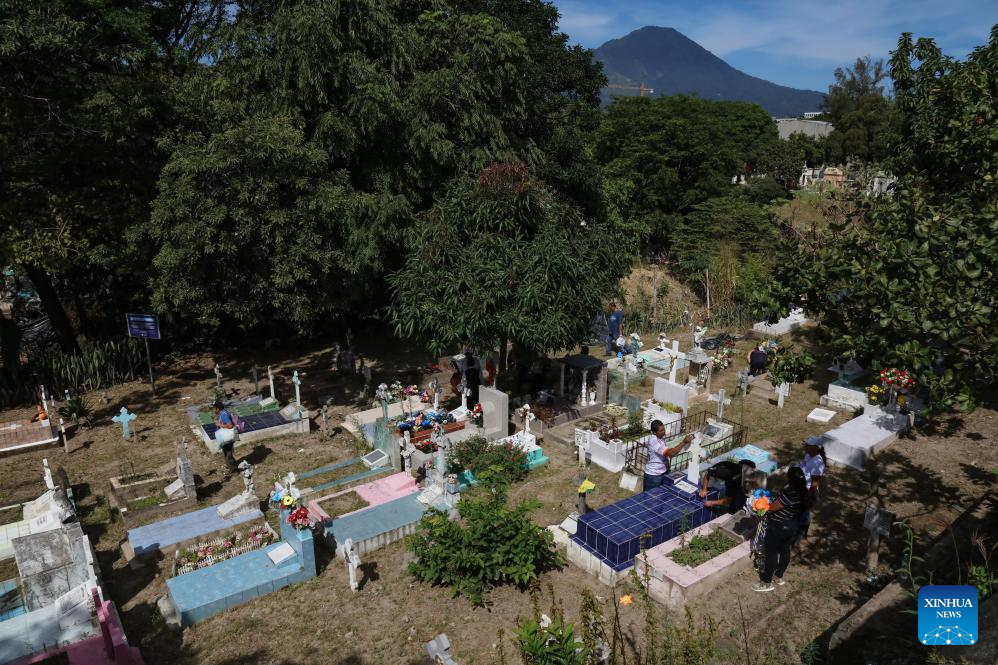 SAN SALVADOR, 2 noviembre, 2025 (Xinhua) -- Personas limpian y adornan las tumbas de sus familiares durante la conmemoración del Día de los Difuntos en el Cementerio de Los Ilustres, en el departamento de San Salvador, capital de El Salvador, el 2 de noviembre de 2025. (Xinhua/Alexander Peña)