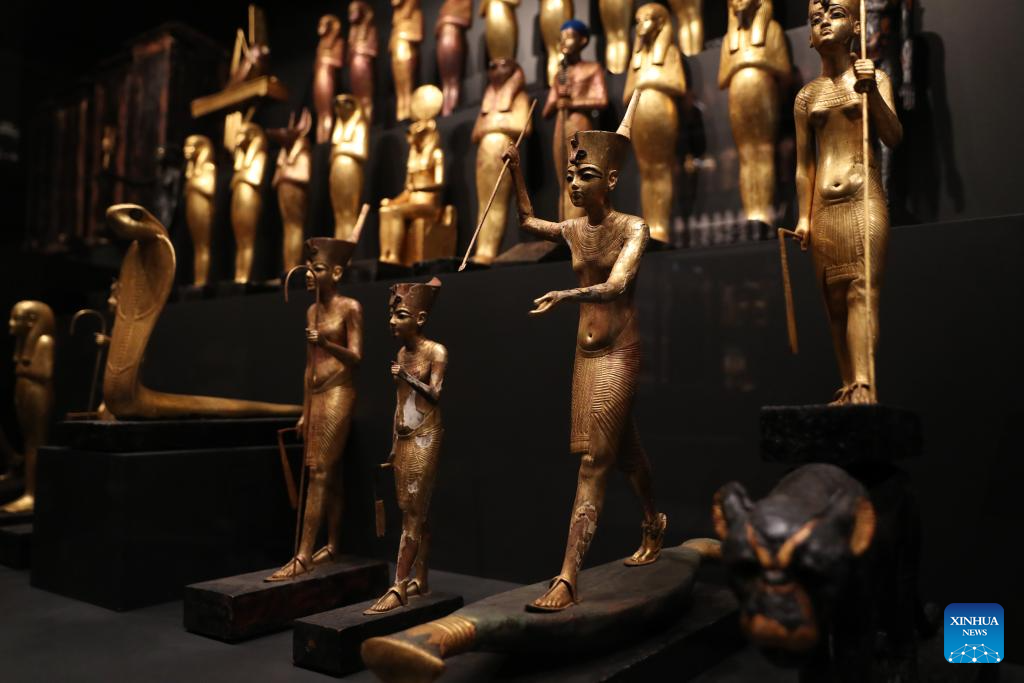 EL CAIRO, 4 noviembre, 2025 (Xinhua) -- Imagen del 4 de noviembre de 2025 de exhibiciones en la sala de exposiciones del rey Tutankamón del Gran Museo Egipcio (GEM, por sus siglas en inglés), en Giza, Egipto. El GEM, el museo más grande del mundo dedicado a una sola civilización, abrió sus puertas al público el martes. (Xinhua/Sui Xiankai)