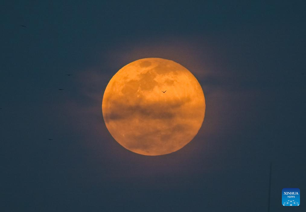HARBIN, 5 noviembre, 2025 (Xinhua) -- Una luna llena es vista en Qiqihar, en la provincia de Heilongjiang, en el noreste de China, el 5 de noviembre de 2025. Los observadores lunares podrán ver la luna llena más grande y brillante de 2025 cuando la Luna alcance su punto más cercano a la Tierra a las 21:19 (hora de Beijing) del miércoles. (Xinhua/Wang Yonggang)