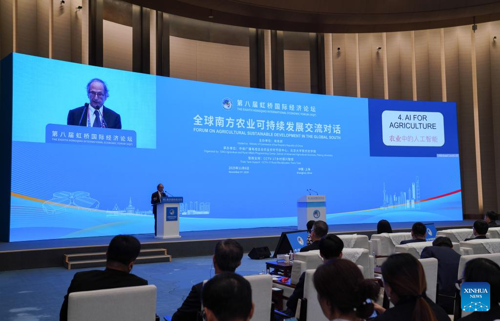 SHANGHAI, 6 noviembre, 2025 (Xinhua) -- El Foro sobre Desarrollo Agrícola Sostenible en el Sur Global es celebrado durante VIII Foro Económico Internacional de Hongqiao en el Centro Nacional de Exposiciones y Convenciones (Shanghai), en Shanghai, en el este de China, el 6 de noviembre de 2025. (Xinhua/Fan Yuqing)