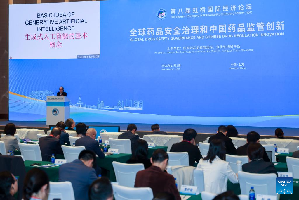 SHANGHAI, 6 noviembre, 2025 (Xinhua) -- Un subforo titulado "Gobernanza Global de la Seguridad de los Medicamentos e Innovación en la Regulación Farmacéutica China" es celebrado durante VIII Foro Económico Internacional de Hongqiao en el Centro Nacional de Exposiciones y Convenciones (Shanghai), en Shanghai, en el este de China, el 6 de noviembre de 2025. (Xinhua/Wang Xiang)