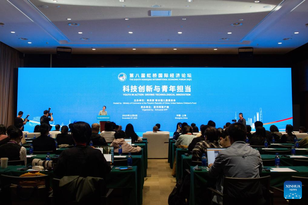 SHANGHAI, 6 noviembre, 2025 (Xinhua) -- Un subforo titulado "Juventud en Acción: Impulsando la Innovación Tecnológica" es celebrado durante VIII Foro Económico Internacional de Hongqiao en el Centro Nacional de Exposiciones y Convenciones (Shanghai), en Shanghai, en el este de China, el 6 de noviembre de 2025. (Xinhua/Tian Weiwei)
